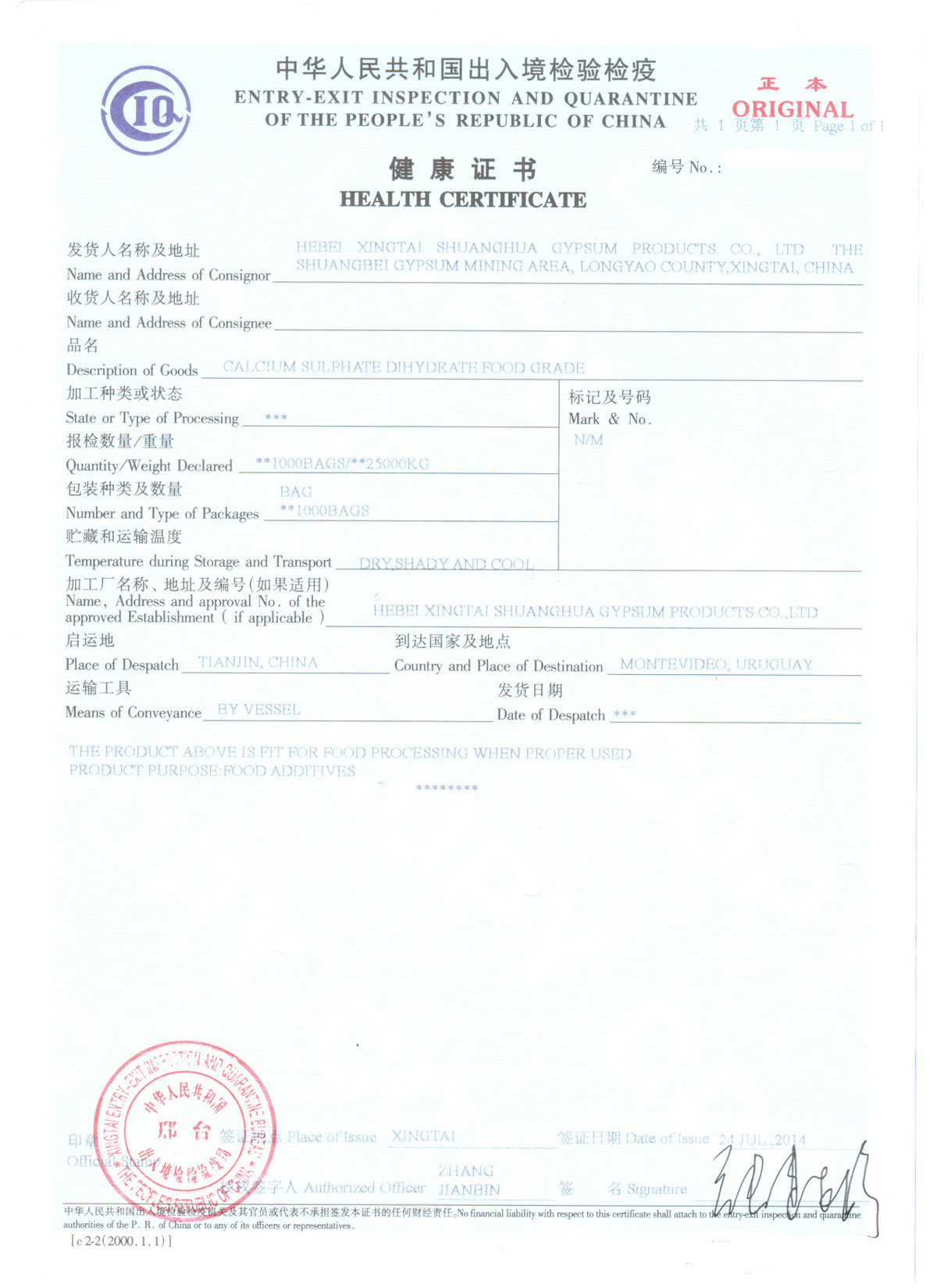 | 健康證書(shū) | 質(zhì)量證書(shū) | 自由銷售證明 |
